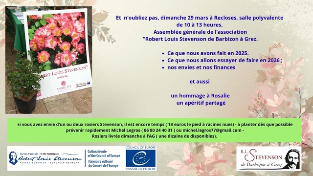 - Conférence de Michel Legros, le 4 mars 2025 sur le thème des voyages de Stevenson en Seine et Marne et au-delà – Archives départementales de Seine et Marne.